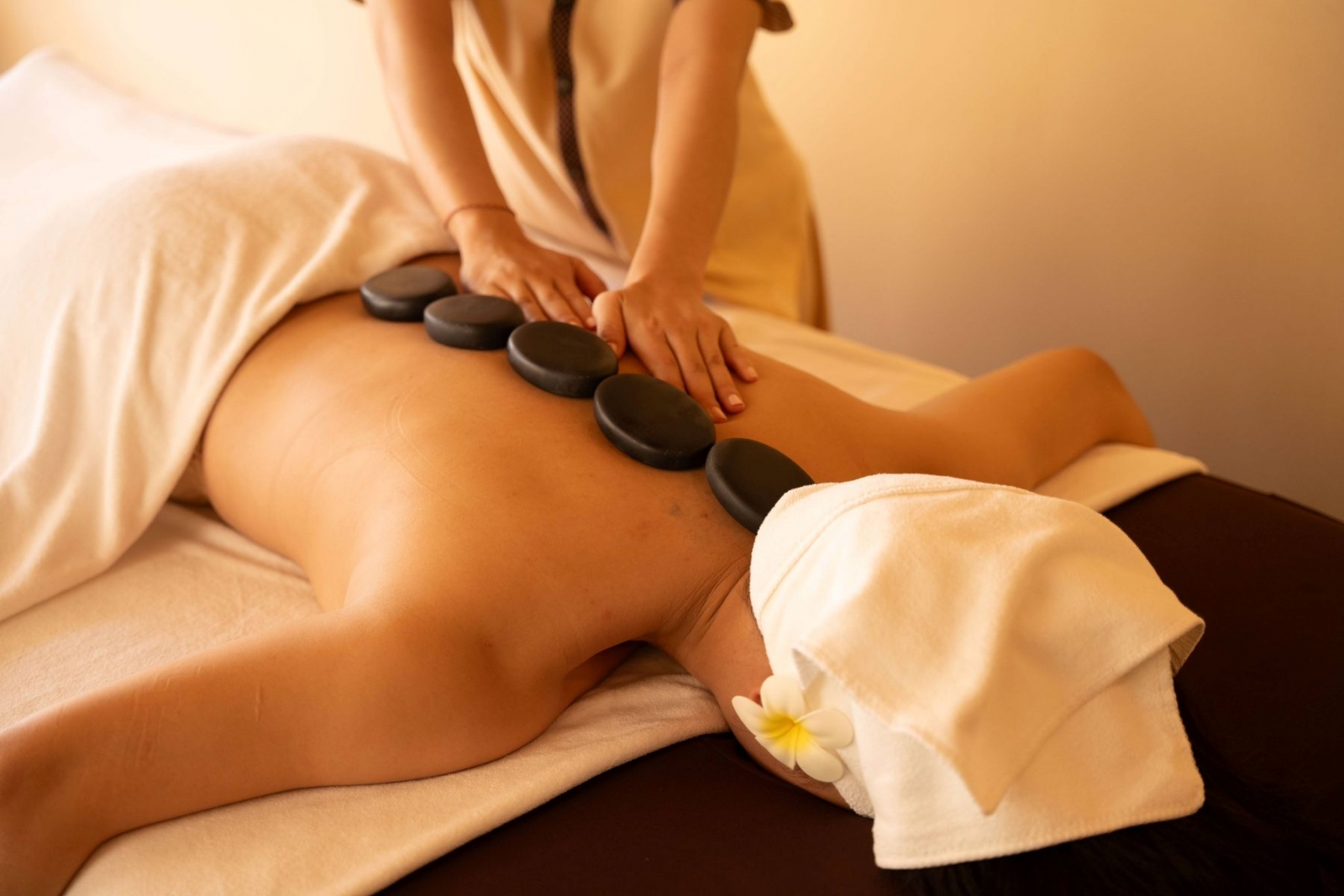 Với du khách vừa trải qua chuyến bay dài hoặc cảm thấy cơ thể căng cứng, massage đá nóng là lựa chọn rất đáng cân nhắc. Hơi nóng từ đá bazan giúp làm giãn cơ sâu, giảm đau nhanh và mang lại cảm giác thư thái rõ rệt chỉ sau một liệu trình.